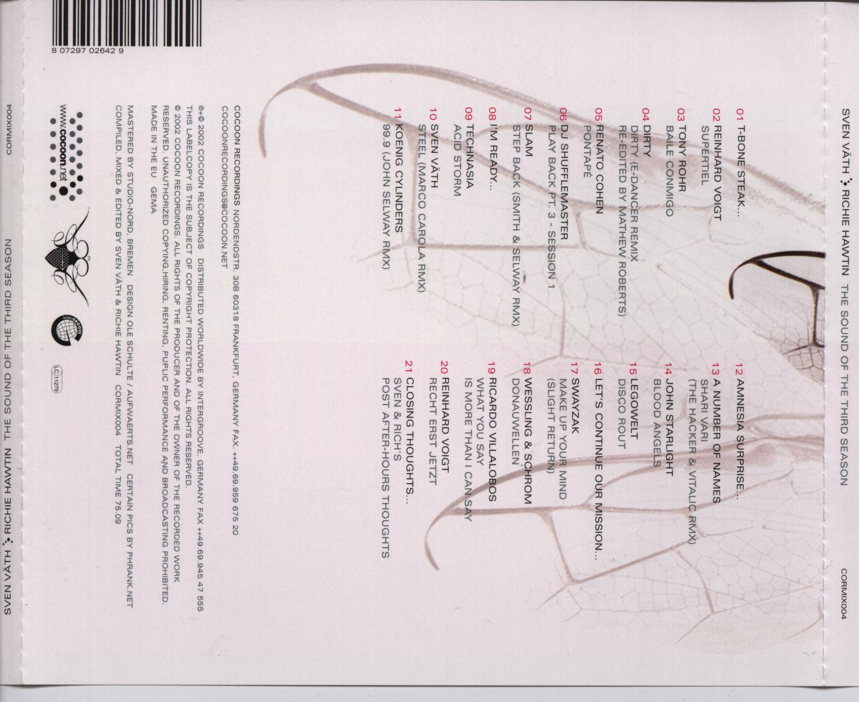 - Rainer Wachtelborn (wachtel -AT- lovefamily -DOT- de, wachtel -AT- technoid -DOT- de) 'Cocoon 2001 - Mixed by Sven Väth', 'Sunpeople: Check Your Buddha', 'Zombie Nation: Souls At Zero DEKA 009'.